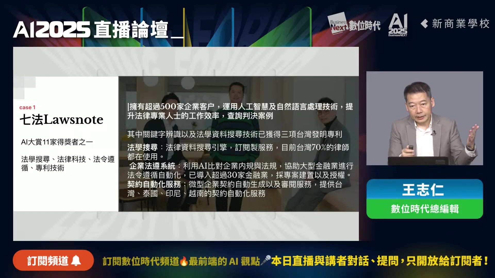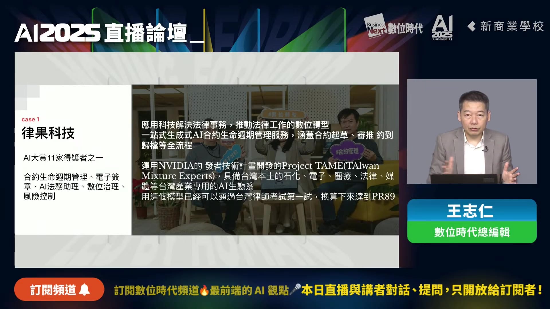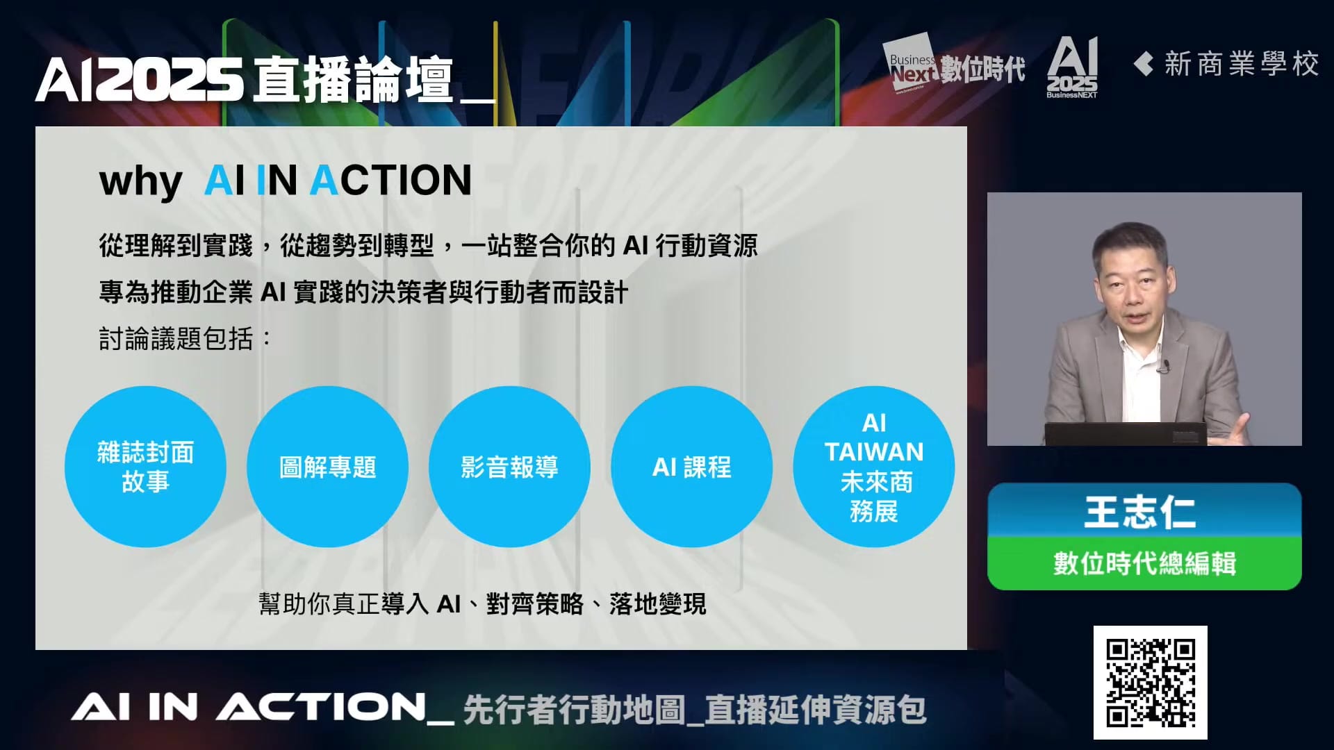 王志仁在開場時介紹了數位時代今年第二季推出的「AI in Action」專題系列,內容包含: