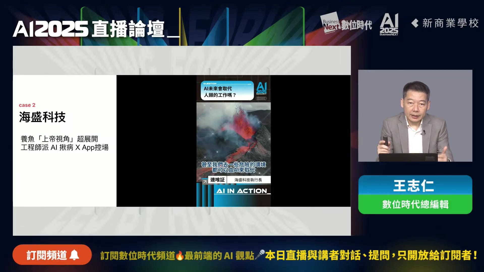數位時代總編輯王志仁日前於「AI 2025」直播論壇中,以其三十年科技產業觀察經驗,分享了企業在AI時代需要面對的三大關鍵問題,同時介紹了台灣與全球AI應用的成功案例。這場由數位時代與新商業學校共同主辦的直播論壇,是「AI in Action」系列活動的一部分,吸引了大量關注AI發展與商業機會的觀眾。